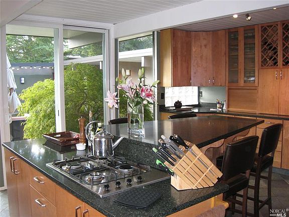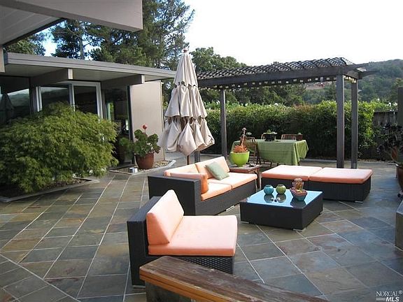 Classic Eichler*Remodeled/upgraded with nothing left undone - Move right in*. 4 bedrooms + office space*Gourmet kitchen with breakfast area,tile floor, stainless appliances, maple cabinets opens to entertaining patio with outdooor fp and trellis*Livrm w/beamed ceilings &adjac din area*Master w/glass door opening to lush yard*Large yard w/patio,gardens,fp,entertaining areas*Upgrades include roof, windows, flooring, paint,kitch,bath& radiant heat*