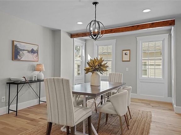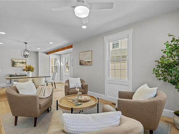 Welcome to Downtown Bristol living in this beautifully remodeled cottage with pure coastal vibes. The transformation of this 1850 charmer was executed via a lens of savoring the old while infusing the new. Enjoy the detailed historic millwork, such as the repurposed original beams & mantle, while maximizing seamless, open-concept living, robust with amenities. Graced with wide-planked hardwoods, stainless appliances, 1st-floor primary, dual laundry, roof deck, & flex space, this cottage checks many boxes! Enter to find a large dining/ living area with intricate window & wall trim, adding dimension & style throughout the home. An ideal home office, half bath with supplemental laundry & mudroom add function to floor one. A generous kitchen with ample floor-to-ceiling cabinets, stainless appliances, & a striking island is the hub between the large dining area & den with vaulted ceiling. A convenient 1st floor primary boasts a walk-in closet & en suite with a custom tiled shower. Upstairs, find 3 bedrooms with hardwoods, plentiful light, & flex space for an ideal homework/entertainment area. The piece de resistance lies in the roof deck, where you can enjoy a morning coffee or watch the fireworks during Bristol's 4th of July celebrations! A full bath with laundry completes the second floor. With exceptional craftsmanship and a focus on preserving the "old Bristol charm," this completely renovated cottage awaits its new owners, ready to maximize downtown Bristol living in style!