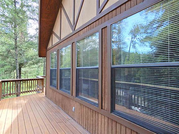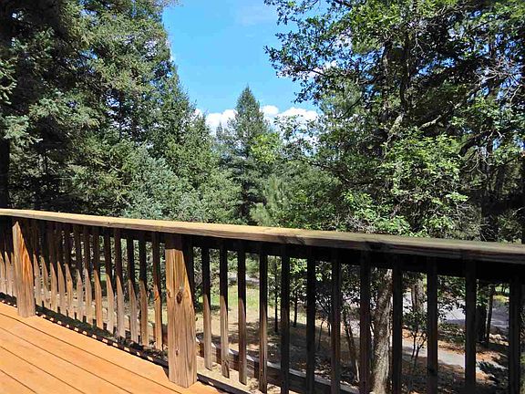 Cabin enjoys quiet cul-de-sac location with forest & mountain views. Sitting above a double circle driveway, there's upper & lower decks & ground floor entry from the back. Cabin has 2x6 construction, living area has vaulted ceiling, fireplace & windows across the entire front. Efficient kitchen, laundry rm, lots of closets. All bedrooms are nicely sized. There is newer roof & downstairs carpets. Lower level den has toasty Lopi wood burning stove. Paved maintained roads, gated neighborhood, pond.