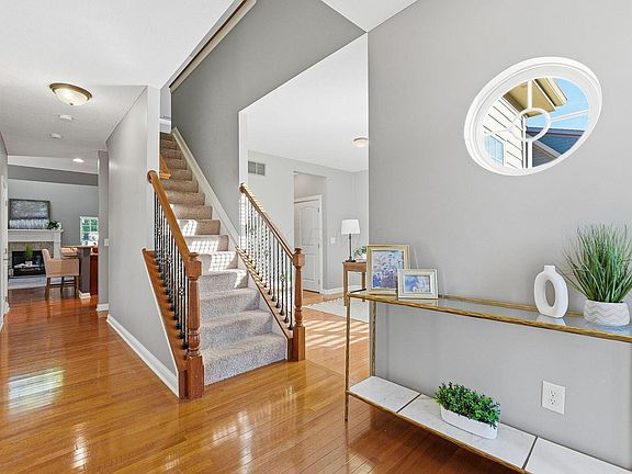 The spacious first-floor Primary Suite, with new luxury carpet, is a peaceful retreat featuring a large walk-in closet and ensuite bath with dual sinks and a separate shower.