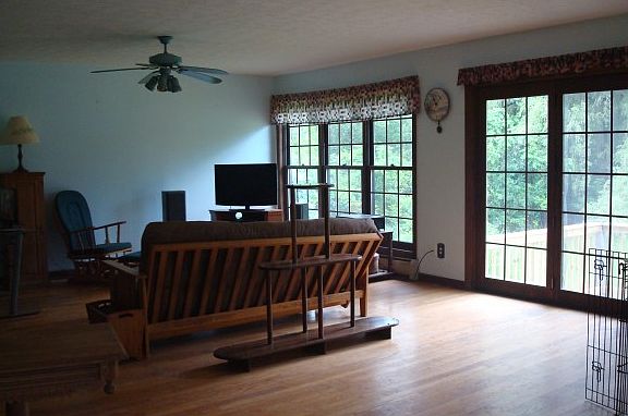 Seller offering $5,000 to purchaser towards upgrades in flooring/closing costs! One level home with recent updates including furnace, hot water heater, dishwasher and fresh paint. Spacious kitchen with lots of cabinets and center island. Open concept kitchen, dining room, living room with red oak hardwood flooring. Large bathroom features stand-alone shower, Jacuzzi tub and ceramic tiled floor. Basement with plumbing roughed in for future expansion, could be easily finished to add living space. Nice wrap-around deck and covered front porch. Fully fenced in back yard great for your family and pets. Perennial flowers and mature trees provide privacy.