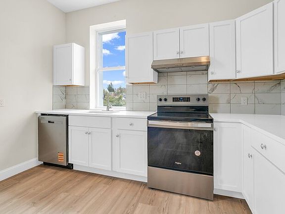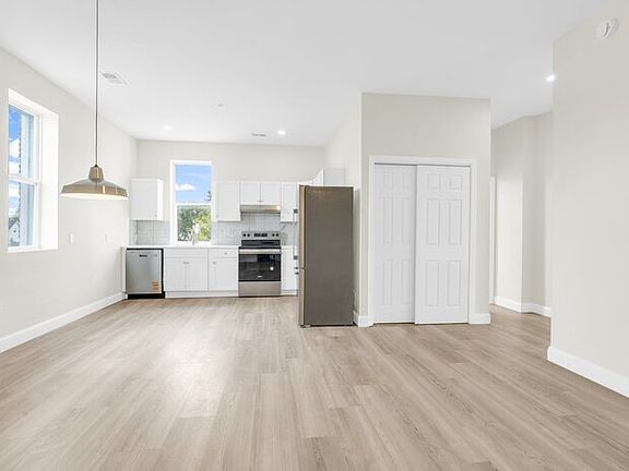 Sleek white cabinetryNewly renovated apartmentsFresh neutral paintRecessed lightingStainless steel appliancesCeiling fansLarge windows