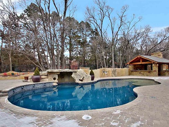 If you're looking for that perfect home, look no further. Hidden back in highly desired Shady Brook Farms is an estate built for entertaining family and friends. It is comfortably located within the Andover School District and has Sedgwick County taxes. This home offers almost 5,600 square feet and a backyard you won't believe. The open floor plan of the main floor gives you a huge living room with a fireplace, gorgeous built-ins and a entire wall of windows looking out to the incredible backyard. Connected to this is the formal dining room large enough for any gathering. Find yourself in the kitchen and you'll be greeted with a lovely open space flowing to the hearth room and breakfast room. The entire space has wonderful built-ins, terrific lighting, abundant windows, gorgeous woodwork and more counter space than you'll know what to do with! Double ovens and a gas cooktop make cooking a breeze. Just off the hearth room is a sunken office with built in book cases and tall ceilings. The master bedroom and bath are everything you could hope for ... whirlpool tub, double sinks, steam shower and a massive closet. Head on down to the lower level and you'll find bedrooms number 3 & 4, a dedicated home gym, and a walk-out rec room with game area, theater area (with drop down screen and projector), large wet bar and the third of 4 fireplaces. You can make this lower level anything you like! Once outside you'll never want to leave. This backyard was just done in 2017 and made to entertain. The outdoor Pavilion has a full kitchen with grill, cook-top, kegerator, ice maker, refrigerator, two bar areas and enough space around the fireplace for a seating area. The pool is a dream with a shallow ledge for your chaise lounges and umbrella AND there is even a grotto - sit inside and enjoy or dive off the top into the pool below. Follow the stone path and wind your way through the landscaping to the over-sized firepit. There is even a putting green and also trampoline. Need some music? The entire house AND yard are wired for sound. The lawn has a well and sprinkler system to make lawn maintenance a breeze. The sprinkler system, swimming pool and alarm system are all controlled by apps from your phone. The 3 car garage is oversized and will accommodate anything you need.