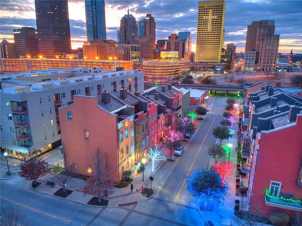 Find yourself living a lifestyle of luxury in the Brownstones of Maywood Park. Convenience in the Heart of OKC and within walking distance to Bricktown, Delicious Dining, Nightlife, Myriad Gardens, Festivals, Dog Parks, Coffee Shops and all the action on Thunder game night! Rich components of slate tile, copper, and wrought iron clad the Brownstone’s unique insulated concrete structures, along with the finest masonry brick exteriors. Through the front door the wide foyer invites guests into the spacious interior. The ground level features a en-suite bedroom, access to the 2 car garage and mud area. The main level features generously sized double living rooms, powder rm, wall to wall windows, well appointed kitchen with granite, stainless steel appliances and dining area. Balcony off the main level. Upper level boasts en-suite master with sitting area, 2nd en-suite bedroom and utility room. All levels proportioned with high ceilings and wood floors.