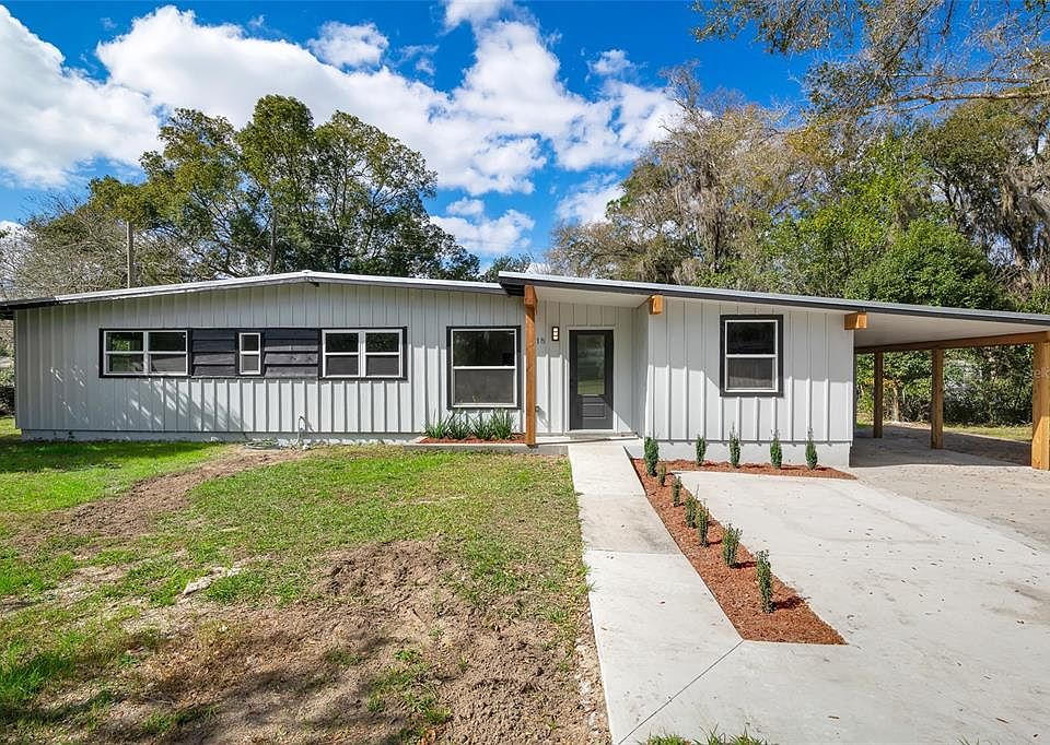 Rare opportunity to own a completely remodeled home near the University of Florida. This beautiful 4/4 bath home has been completely redone from the studs up. Upgrades include (2023): New Metal Roof, New Plumbing, All new upgraded electrical, tankless water heater, new HVAC, New Windows, completely remodeled bathrooms and kitchen with quartz countertops. Luxury Vinyl plank installed throughout. R19 insulation between bedrooms and in attic! New double driveway all within a short distance to UF. Walk to Publix, Movie Theater, Gym & many shops and restaurants.