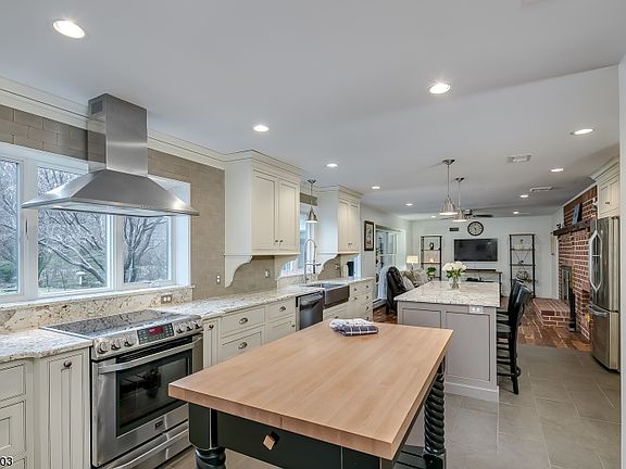 Fabulous completely renovated ranch with an open concept floor plan, designer gourmet kitchen and spa-like bathrooms set back from the road with a park-like backyard featuring specimen plantings. This move-in-ready brick ranch offers a gourmet kitchen with custom cabinetry, stainless steel appliances, granite countertops, pantry, and dry bar. The kitchen flows into the family room with new wood floors and a wood burning fireplace. The family room opens to the light-filled sunroom which overlooks the fenced in rear yard and 1,500 square foot paver patio.