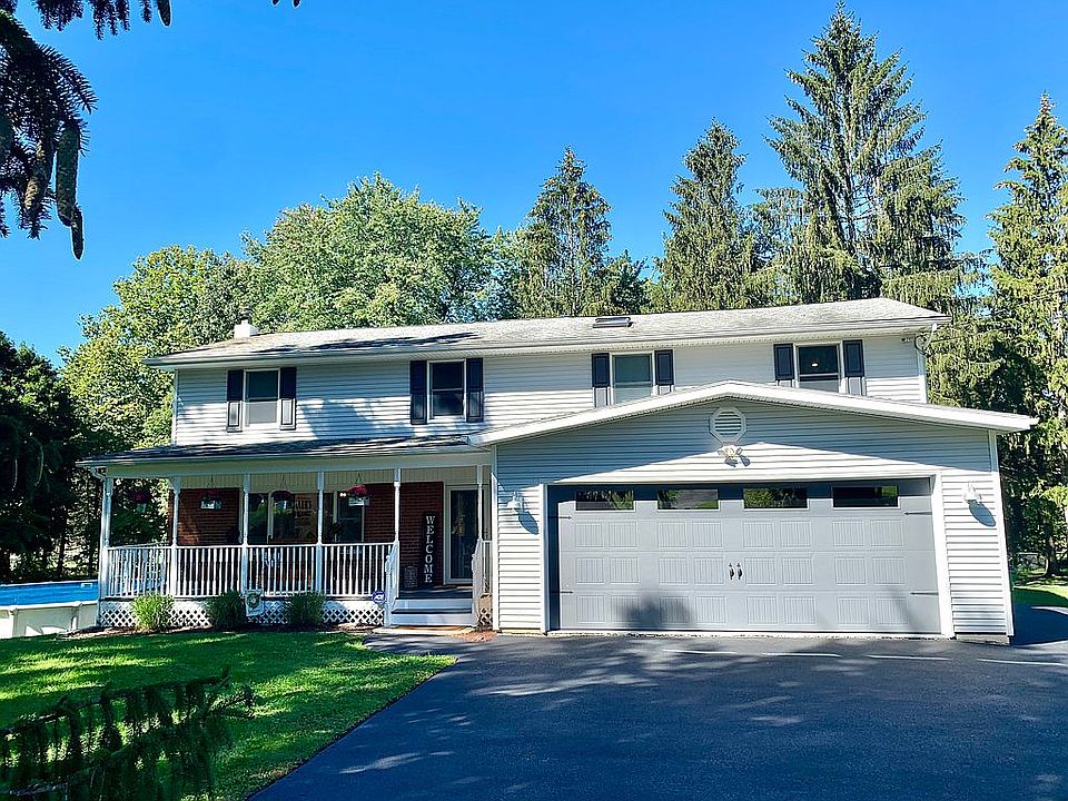 THIS IS IT ! Close your eyes, picture heaven-here it is. Amazing Colonial renovated from top to bottom, no expense spared! 4+ bedrooms, 2 1/2 bath with attached 2 car garage and front porch, sits on a flat 1 acre lot with retractable awning covering the spacious deck, above ground pool, patio, shed and fire pit. Remodeled open kitchen features quartz counters, stainless appliances, farmhouse sink, a coffee/wine bar and spot for an island. 1st floor updated powder room with washer/dryer, large pantry, and office/playroom/den- whatever ! 4+ bedrooms upstairs, Master bedroom ensuite with accent wall, master bath has multiple showerheads, folding bench, wall mounted faucet. 2nd bedroom has sitting room/nursery, there are 2 more bedrooms and MASSIVE bonus room with arched windows, for Gaming? Music? Art studio? Movie theater? Updates include shiplap walls, barn doors, industrial lighting fixtures, recessed lighting throughout, and new hardwood and engineered flooring