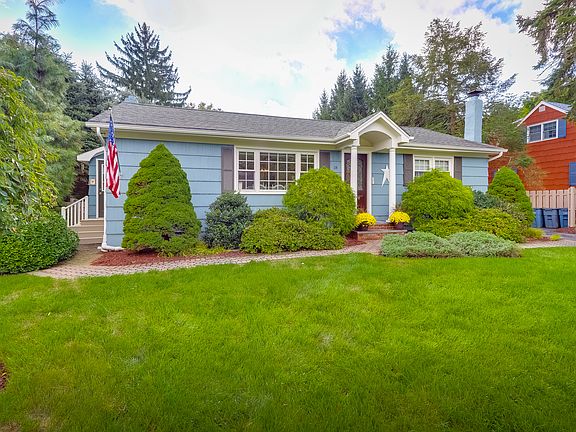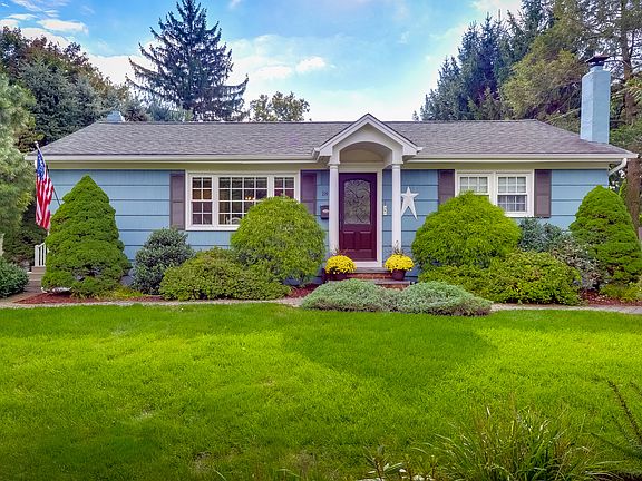 updated, move-in ready ranch w/extensive professional landscaping & heated in-ground pool (w/new liner) is sure to please! Gorgeous, spacious Dining Rm w/chair rail moulding leads into updated Kit w/SS apps and sep. DA, open to lovely FR w/slider to Backyard. Master BR w/brand new Master Bath w/tiled stall shower. 2 additional Bedrooms & another brand new full bath w/imported tile and shower over tub. Terrific partial Basement w/Rec Rm and Office w/Full Bath. Private, resort-like Backyard w/adorable Cabana w/refrigerator & perfectly appointed Half Bath - no wet feet in the house after swimming! Hardwoods throughout (even under new carpet). 2-y-o oversized CA unit, 5-y-o roof, 3-z base heat, 4-z sprinkler, central vac, brand new ADT alarm system. Detached finished garage. RML $47/yr. New Septic at close!