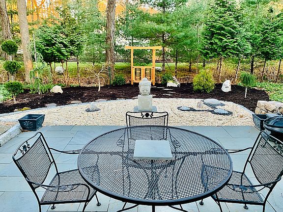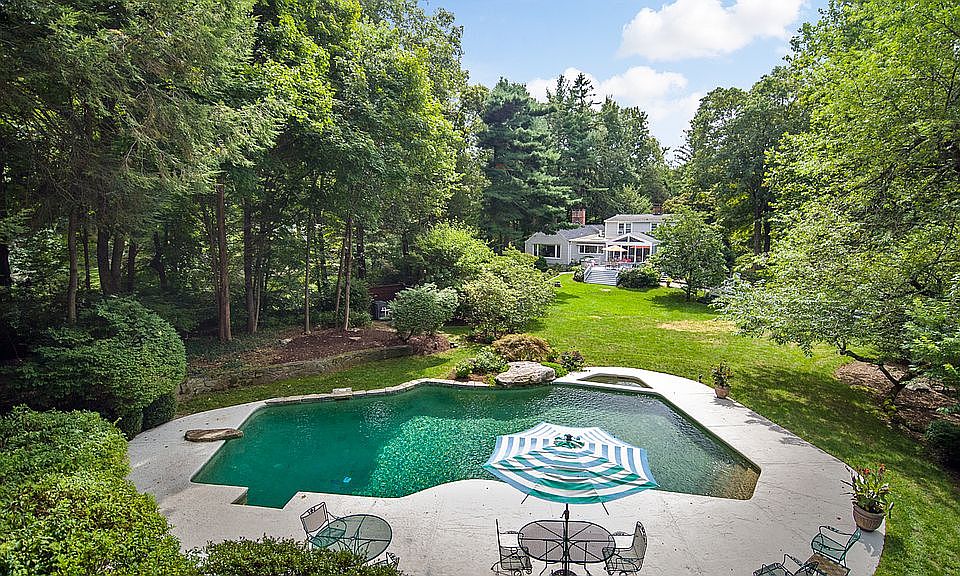 Cap Code with lovely gardens and thousands of flowers with a pool and guest cottage and a barn on 2.34 level acres walking distance to schools and Weston town center.