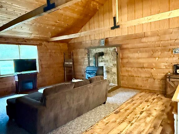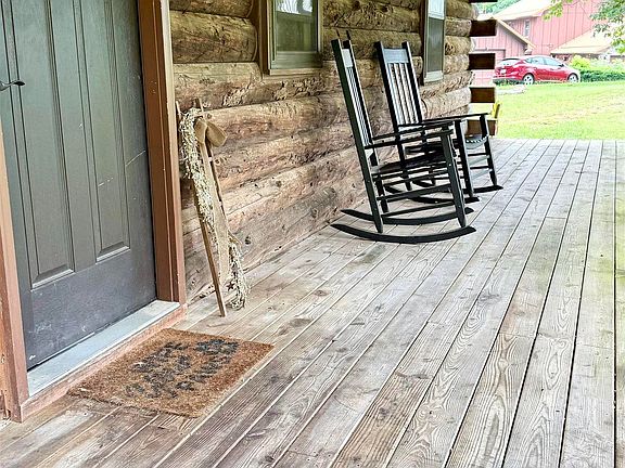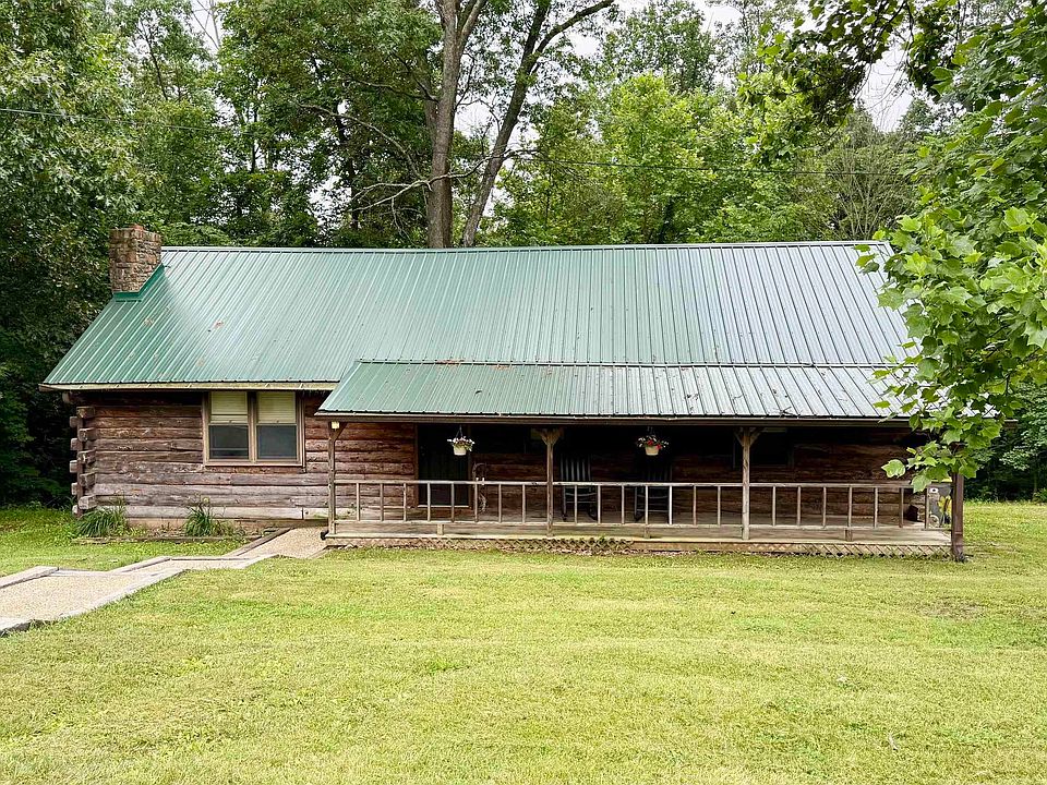 Spacious 4 bedroom, 2 bath log home, conveniently located just 2 miles from hwy 37. This home offers comfort and privacy. The open living area features a wood burning stove, perfect for cozy evenings. Step outside to the covered deck, overlooking the partially wooded lot. This is ideal for relaxing and entertaining. This home is situated on a private road, which provides a peaceful setting due to no traffic. The metal roof adds durability and character. With generous room sizes and classic log cabin details throughout, this home is ready for your personal touches. A rare opportunity for those seeking space, privacy and charm, all within easy reach to both Bloomington and Bedford.