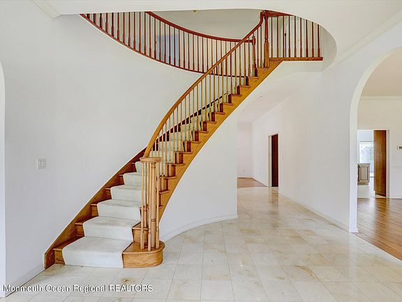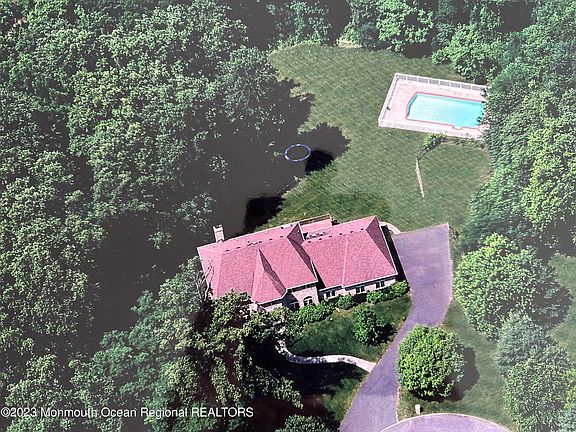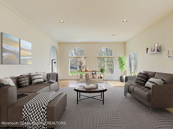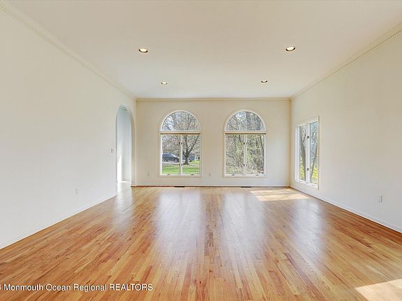 appliances & spacious eat-in area with a skylight & sliding door to the outdoor deck ideal for indoor & outdoor entertaining. The 1st floor additionally offers an en-suite bedroom/Office, laundry room & convenient access to an attached 3 car garage. The 2nd floor leads to an expansive Primary Suite with sitting area, walk-in closets, 2 separate dressing areas & generous Primary Bath with dual vanity, tub & skylights. 1 en-suite bedroom & 2 additional bedrooms with full hall bath complete this level. The walk-out Lower Level is not to be missed & features high ceilings, full bath & exceptional storage. Truly a remarkable opportunity in a highly desirable & private Holmdel location. Conveniently appointed near Rt 35 shopping/restaurants, iconic Bell Works, MSK, NYC transportation, beautiful parks & Jersey Shore