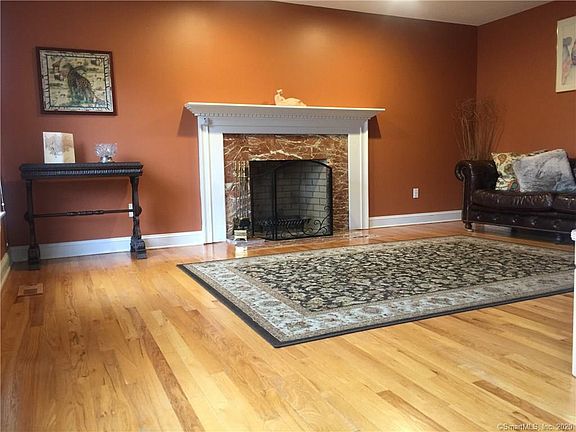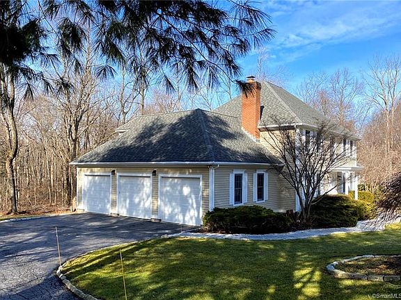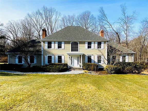 This lovely stately colonial home located in a cul-de-sac neighborhood in central Woodbridge. The home built in 1995 has 4 bedrooms, 3 full baths and 2 half baths. 1.85 acres borders the Woodbridge conservation land. The main level boasts an open floor plan, kitchen with birch cabinets, stainless steel appliances, granite counters, an island and generous breakfast space. Open to the kitchen is a large sun-filled family room with a cozy fire place and French doors which lead to a deck that overlooks the beautiful private wooded backyard. The main floor has a lovely formal living room with fire place, a formal dining room and a study/library. The laundry room is on the main level, hardwood floors throughout the first floor. Second floor has 4 bedrooms including a Master Suite with a whirlpool tub and large walk-in closet. A spacious walk-out finished basement (1200 sf not included in the total space count) with a half bath, sliders to the backyard for recreation/exercise workshop. 3-car attached garage. Newer a/c and boiler, etc. Enjoy serenity of quiet private setting while so close to the town library and public schools & private schools, Yale/New Haven and shopping/restaurants.