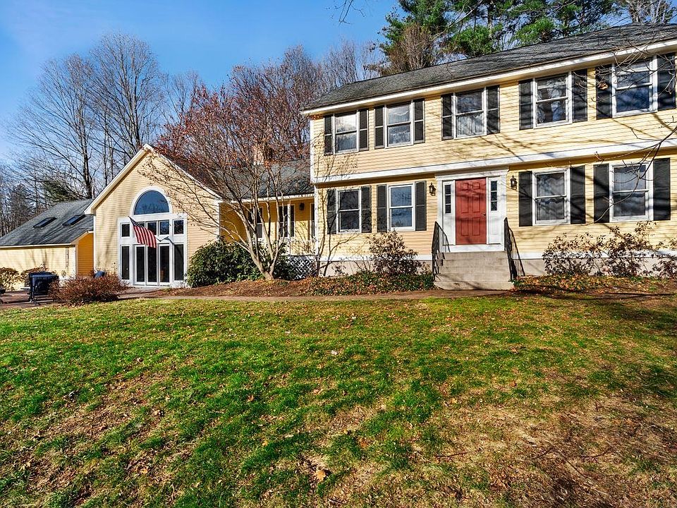 Rare opportunity to own this Classic Colonial home with custom features located within walking distance to the Mont Vernon Village, and minutes to the quaint Amherst Village Green. Part of the TOP RATED and renowned Mont Vernon-Amherst SCHOOL DISTRICT. The home sits proudly on over 3 acres with GRANITE STEPS and BRICK WALKWAYS that guide you to the front door. This 11 room Colonial has HARDWOOD FLOORS, a large inviting Kitchen with GRANITE COUNTERS, a VIKING gas stove, and BUTLERS PANTRY which are all open to the Dining and Living Room. The 1st floor also offers an OFFICE with CUSTOM BUILT-INS and FIRST FLOOR LAUNDRY. Spend cozy evenings and sunny days in the fabulous Tiled Family Room with cathedral ceiling and palladium window. There is also a mini bar, more built-ins, woodstove and French Doors to a BRICK PATIO. Do not miss the MUDROOM a New Hampshire must have! The LARGE FINISHED GREAT ROOM over the garage has HARDWOOD FLOORS and WOOD BEAMS and has so much extra room for activities! There is a LOFT area overlooking the Family Room that is great for all your ideas. The 2nd floor is where you will find the PRIMARY BEDROOM w/BATH as well as 3 bedrooms and Full bathroom. ALL NEW CARPET! Enjoy the DECK overlooking the private back yard with fencing. The location is private yet but still close to all that New Hampshire offers!
