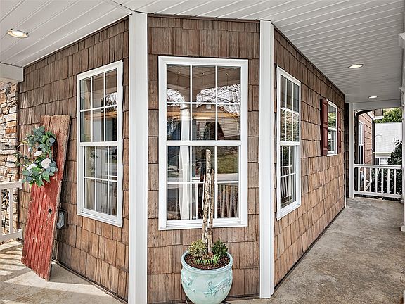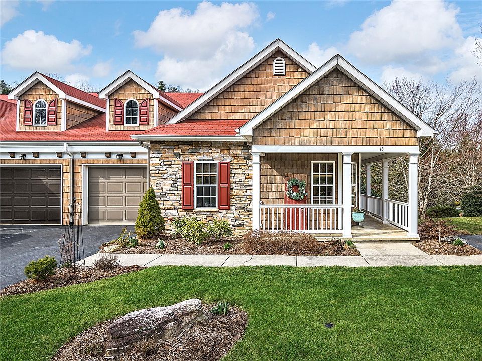 Desirable Shaws Creek Farm neighborhood! This home, formerly a community model, has many special features. You will love the covered wrap around front porch and all the large windows providing lots of natural light plus views from the kitchen, breakfast eating area and living room all overlooking the beautiful adjacent greenspace. Other features include 9 foot ceilings and hardwood oak floors throughout the main level, kitchen with quartz countertops and oak cabinets, rear deck next to the babbling creek with sunset views, primary bedroom ensuite plus an extra 2nd full bath on the first floor. The lower-level features luxury vinyl flooring, 2 bedrooms rooms with a Jack and Jill bath, utility room with a sink, big closets, a walk out to the lower patio and a large crawl space that could be used for storage. This central location is just minutes to downtown Hendersonville and adjacent to the forthcoming Ecusta Trail greenway providing healthy option access to the surrounding community.