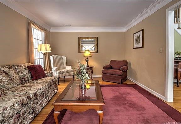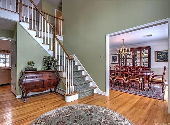 Classic center hall colonial in a beautiful, wooded setting surrounding grounds of 1.54 acres on a small cul-de-sac street. The home was custom built for the owners with crown modeling through and true divided light windows . Two story ceilings highlight the floor plan of this 4 bedroom 2.5 bath home. Its large deck is great for entertaining & BBQs. The kitchen has been remodeled with granite counters and stainless steel appliances. The master suite features a tray ceiling and a master bath with double sinks, spa-tub, separate shower and marble counters. There is central air. BRAND NEW FURANCE AS OF MARCH 2017. There is a large (812 sq ft)finished basement with a separate office and plenty of storage. This is a conveniently located, but private setting, with easy access to Yale, Merritt Parkway, and an award winning school system.