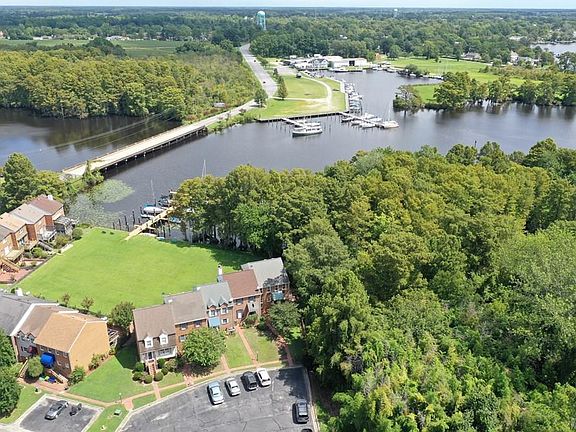 Soak in the Pembroke Creek scenery from this elegant townhouse, minutes from Edenton's historic downtown. Kitchen has new appliances and boasts plenty of cabinets, center island, peninsula seating. Waterviews throughout the dining and living areas. LR has FP w/gas logs w/adjacent climate-controlled sunroom. Master has high ceilings, 2 closets, ensuite bath. 2 guest BRs share hall bath. Ground level bed/bath guest quarters,den w/bar open to patio, covered storage, courtyard. Deeded boat slip (15x35) accommodates watercraft for "backyard" access to fishing, sailing, sunset cruises. Corner unit.