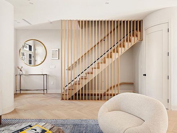 Head upstairs to the primary suite where you will enjoy customized closets, and space for a king-size bed, nightstands, and a small sitting area as well. The windowed bath is fully clad in rich Calacatta-Gold stone and is complemented by brass fixtures and a double vanity. The additional bedroom on this floor makes a wonderful nursery, home office, or guest room. A very dramatic top floor includes soaring ceiling heights and is the perfect lair for the kids, or for your extensive hobbies. Two additional bedrooms and bathrooms flank a central hang-out space complete with skylights. Head back downstairs to the windowed garden level that makes THE perfect custom yoga room and gym, with extra space for a guest room, and an additional full bath. All beautifully appointed with oversized stone-tiled floors and extensive millwork that has already been created to perfectly complement the elegant minimalism seen throughout every room in this home.