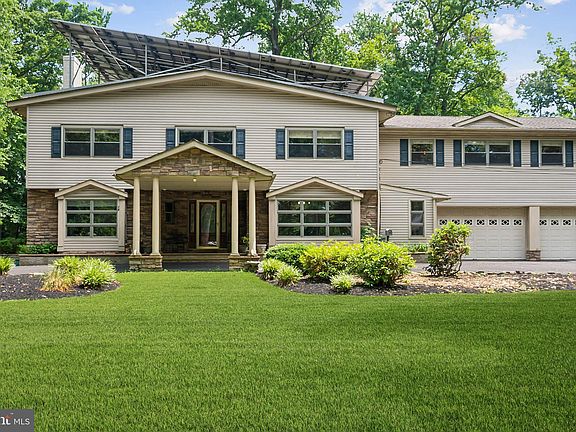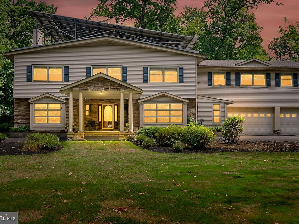 Welcome to your dream home! Nestled on a serene tree-lined cul-de-sac, this stunning property offers just under 4,000 square feet of luxurious living space on almost 2 acres of pristine land. As you step into the foyer, you'll be greeted by elegant granite tile leading to Brazilian cherry hardwood floors that extend throughout the home. The main floor features a spacious living room with a wood-burning stove, a large dining room perfect for entertaining, and a convenient half bath. For those who work from home, there is a dedicated office space. The gourmet eat-in kitchen is a chef's delight, equipped with a Viking stove, Sub-Zero refrigerator, two dishwashers, granite countertops, and a huge butler’s pantry with a second refrigerator. Just off the living space, you'll find an all-year-round room that offers breathtaking views of the private backyard, heated for comfort and featuring two mini-split AC units. Upstairs, the home boasts four large bedrooms, two of which have access to the second-floor balcony. There are also two full bathrooms and additional office space. The primary suite is enormous, with vaulted ceilings, a gas fireplace, a walk-in closet you’ve only dreamed about, and a beautifully appointed en suite bathroom with double sinks, a soaking tub, and a standing shower. The basement is partially finished with a wood burning fireplace and provides plenty of storage space. There is an oversized two-car garage. The grounds are just spectacular, and the owned solar panels offer cost savings in utilities through the NJ SREC-2 program. Don’t miss out on the opportunity to own an exquisite home on an amazing property in Moorestown.
