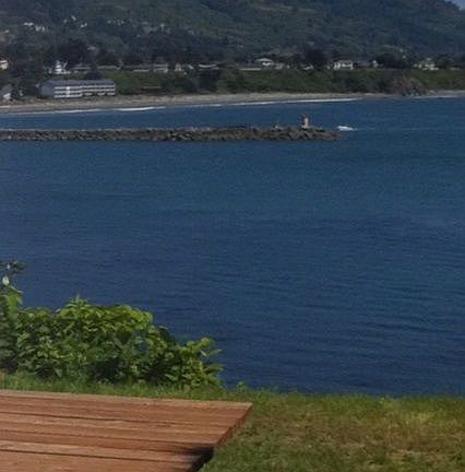 Gorgeous newer built oceanfront cottage on a large flat lot with perfect sea and mountain views--some of the most unique ocean views on coast. 10 foot ceilings and a large deck facing the ocean make this home seem bigger than it is. Situated on a private cul-de-sac among million dollar homes. Shared stairs to beach. RV parking. Plenty of room for expansion or to build a garage. A few blocks walk to downtown and shopping.