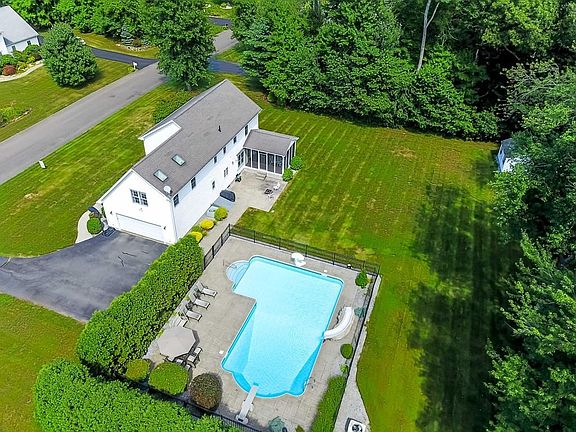 Expect to be impressed with this fabulous colonial in a cul-de-sac neighborhood. Newer updates to kitchen include granite countertops, SS appliances with full range and a wall oven and a kitchen island.. This is a great home for entertaining and large family gatherings. Open floor plan to the family room with gas fireplace and french doors to a great screened in sun porch. It has a versatile floor plan with a 1st flr office which could be a formal living room if desired. Get away from it all in your huge master bedroom suite that has skylights and 2 walk in closets. There are 3 other generous sized bedrooms. 2nd floor laundry is most convenient!! The home is freshly painted with tasteful colors. Enjoy your summers with a gorgeous L-shaped 20x40x32 heated ingr pool area that has aluminum fencing and privacy. It has radius corners and radius stairs, LED lighting, rock slide and rock diving board. There is a sprinkler system, gas heat and HW, Cair. Close to all Wilbraham school