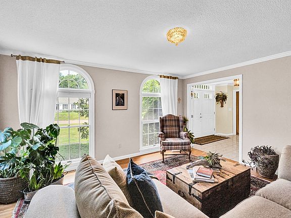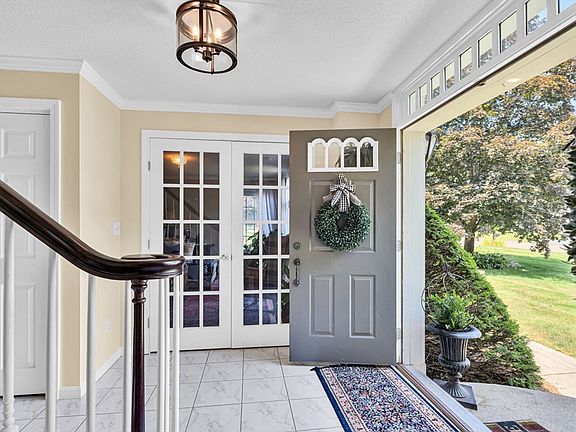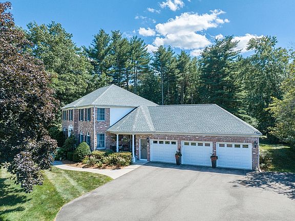 Beautifully appointed brick 9 rm, 4 bdrm, 3 full bath Chapdelaine Colonial, on privately landscaped .86 acre lot w/ perennial gardens, has oversized built-in salt water pool w/ customized jacuzzi spa & outdoor fireplace.1st floor offers an open floor plan, mud hall w/locker cubbies, separate laundry room, full shower bath, pantry, palladium windows, formal living & dining rms, family rm w/floor-to-cathedral ceiling fieldstone fireplace w/mantle, hardwood floors & generous screen porch overlooking the yard, gardens & pool. Remodeled kitchen has updated granite counter center isle, tile floors, SS appliances, wine fridge, drawer microwave & newer cabinetry. Upstairs: 4 bdrms & 2 baths include en-suite primary bedroom w/hardwood floors, oversized walk-in closet & full remodeled double vanity bathroom w/ slipper tub & separate SMART shower. Below: family room/media room w/ electric fireplace, home office & storage area with rough plumbing. 3 car garage with attic storage. Newer roof too!