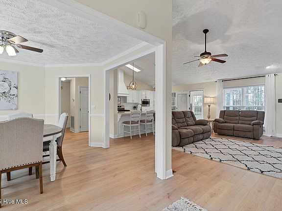Bright and cheery, open and inviting! Welcome home to this charming, remodeled 3-Bedroom, 2-Bath single-story home in Whispering Pines! This beautifully updated residence features an inviting open floor plan with cathedral ceilings in the main living area. Entertaining is easy with both a formal dining room and a huge kitchen peninsula. You will have plenty of storage in the white cabinets, also boasting newer stainless appliances, custom stove hood, and GAS stove! Fireplace in the living room has been upgraded to a wood pellet system for those cozy nights. The thoughtful split bedroom layout ensures privacy and comfort, with a spacious primary suite on one side and two additional bedrooms and a bath on the other. Main bedroom suite enjoys access to the sunroom, and boasts both a shower and a whirlpool tub. The fully-heated-and-cooled sunroom doubles as a family room or craft room for extra space. Enjoy the low-maintenance composite deck overlooking the huge fenced yard for the gardening enthusiast. Home warranty provided for your peace of mind. Nestled in the serene Whispering Pines community, residents enjoy exclusive access to picturesque lakes and playgrounds, ideal for outdoor recreation and family fun. Don't miss this opportunity to own a move-in-ready home in a sought-after location!