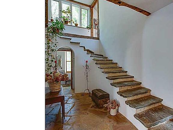 A traditional 3BR 1850's farmhouse with gleaming wood floors, a cook's kitchen & att'd barn. An archway from the kitchen leads you into another time & world, radiant heated stone floors, a 2-story stone fireplace, bookshelves line the walls, a curved stone stairway ascends 2 rooms that lend themselves to an artist's residence.