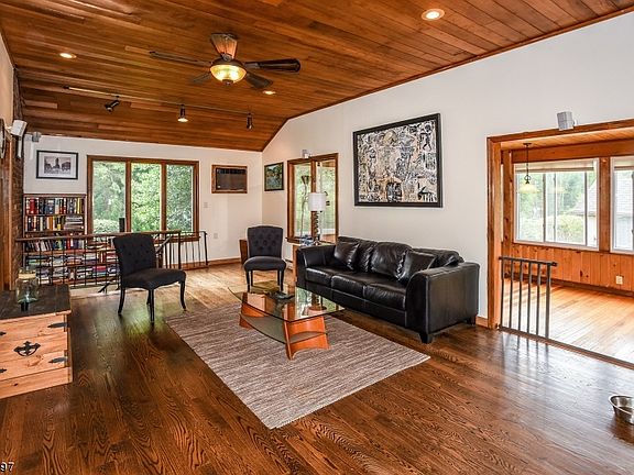 Beautiful well maintained Chester Twp. Ranch with over 2 manicured acres, 2 stall horse barn, large detached garage, additional out buildings, & fenced paddocks. This home features hardwood floors throughout, updated kitchen with cherry cabinets, granite counter tops, tile backsplash, & stainless steel appliances, & living rm. with gas fireplace, custom cabinetry, & track lighting. This home includes many unique highlights such as family rm. with partially brick wall, built in bookcases, dark cedar ceiling with abundance of overhead lighting, & Jersey Winder Staircase leading to partially finished basement. Enjoy a sunroom with walls of glass overlooking a picture perfect rear yard with 2 ponds, barns, & sliders to deck area. Also included is side cedar room, perfect for multiple uses. A Must See!
