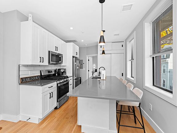 **BROKER FEE PAID BY LANDLORD** Only 1st and security deposit due at signing. Stunning 2022 gut-renovated rental close to everything Charlestown has to offer. This corner unit features an open layout, and ample windows to maximize natural light. The kitchen features white shaker cabinetry with grey quartz countertops, subway tiling, plentiful storage, Samsung's "SmartThings" stainless steel appliances, pendulum lights, and sleek black hardware. Throughout the unit you'll find new black Marvin windows in every room, and beautiful white oak hardwood flooring. Great closet space, natural light, and amazing detail. Central air, recessed lighting, wifi wired, washer/dryer in-unit, and additional storage in basement really knock this one out of the park! Pets considered. Close to all that Charlestown has to offer. Close to local shops, restaurants, convenience stores, and Whole Foods. Easy access to public transportation and the highway. A MUST see.** Available September 1st. Owner pays for water and sewer and snow removal. Tenant pays for gas, electric, and cable/internet. 1st month and security deposit due upon signing a lease. Sqft is approximate. Available September 1st for a 1 year lease. Owner pays for water and sewer and snow removal. Tenant pays for gas, electric, and cable/internet. 1st month and security deposit due upon signing a lease. broker fee covered by landlord