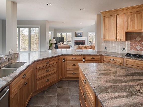 Spacious colonial w/beautiful windows situated on a professionally landscaped 1.3 acre corner lot surrounded by mature trees in highly sought after RavenWood. Subdivision/neighborhood but very private w/views from every window. Home has been meticulously cared for and it shows! Beautifully remodeled kitchen w/both center island and brkfst nook, built in window bench seating, wolf range, wolf dbl wall oven and sub zero fridge. 1st fl laundry rm w/customized cabinetry as well as sink and first floor sun lit office. Hardwoods throughout both first and second floors w/tiled kitchen/mudroom/bathrooms. Expansive finished walk out LL w/full bathroom, workroom and flex room! Move in ready, having recently repainted top to bottom all rooms, new roof (2016), new Concord gas furnace, new well pump/expansion tank and valves, new hot water heater, new sprinkler system controller, and most windows (Anderson). Quick close possible. Near major highways, train stations and state par