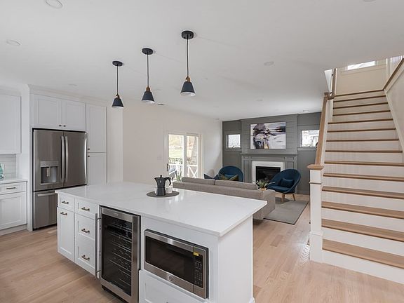Reimagined & reconstructed in 2022, this 3-bed, 2 1/2 bath with a modern farmhouse vibe is a welcome alternative to typical new builds! Rightsized, with designer touches & fine finishes throughout, the main level offers a 1st floor primary bedroom w/ luxe tiled bath & spacious walk-in, and a stunning open plan kitchen/dining/living area with gas fireplace & sliders to a mahogany deck for BBQs and leafy backyard. Stash your gear in the custom mudroom w/ built-ins or stay dry entering via the garage.1st fl rounds out w/ 1/2 bath & laundry; upstairs find 2 roomy bedrooms + a beautiful skylit tiled bath. Lower level is ideal for family room, home office or possible 4th bedroom. Anderson windows, Hardie plank siding, 40-year roof, 200-amp electrical, heat/central air, spray foam insulation, hardwood flooring, new plumbing. Garage under, plus driveway parking. Private backyard. Rare new construction at a reasonable price, in a centrally located neighborhood!