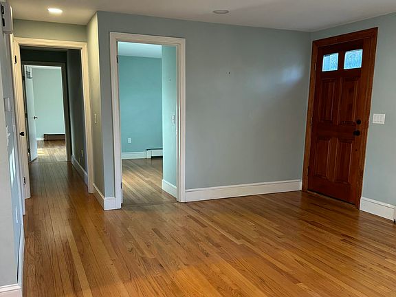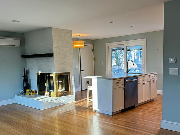 This beautifully renovated ranch home is located in the desirable Brentwood neighborhood. The bright and spacious eat-in kitchen features white cabinetry, an island with seating, stainless steel appliances, and quartz countertops. The primary suite includes a fully renovated bath with a walk-in tiled shower, double vanity, and convenient in-suite laundry. Two additional guest bedrooms share a full bath. The inviting living room features a two-sided wood-burning fireplace and oak hardwood flooring throughout the main level. There is additional finished space in the basement, complete with a second fireplace, offering the perfect spot for a family room, home gym, or playroom. The fully fenced-in backyard is ideal for entertaining offering a newly constructed deck and stone patio with firepit. The property also includes a 1-car attached garage. Other updates include heat pumps for heating/cooling, energy efficient gas hot water system, and radiant heat. Conveniently located just minutes from the center of town, with easy access to schools, shopping, dining, and downtown Portland.