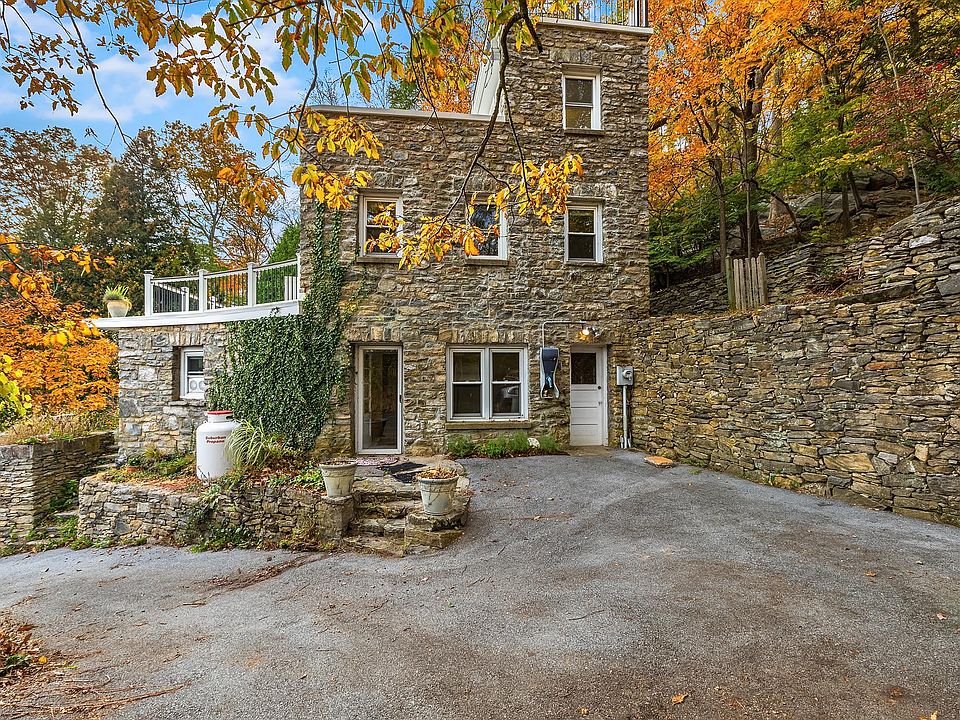 AO inspections completed contracts out Incredible Value for Total privacy surrounded by preserved land with 80 mile views. This stone chalet feels like a mini estate perched like an eagle's nest for full valley and water views. For those seeking the unique and elegant with old world and European style plus perfect Feng Shui. This 1930's Stone House has been modernized with multiple level decking for the roof top of your dreams over 1000 sq feet of deck space. Living Room and Dining room with stone wall accents. European style Kitchen with wood burning stove. Second story bedrooms with doors to the roof deck. Third floor office/den/guest room with access to decking and the top perch. Potential 4th bedroom on the first level. Including additional land parcel for total privacy. Delightful features including: built in Koi Pond, original rock walls and pathways, tiered gardens, built in flower beds. An absolute unique experience for style, energy and peacefulness. Just 55 miles to NYC, close to the Metro North train
