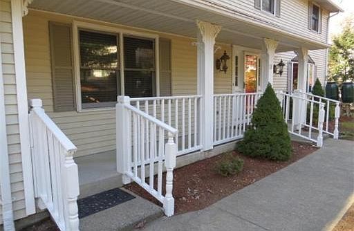 This spacious 4 bedroom 3-1/2 bath colonial has everything you need and more! Main level has fantastic floor plan with great natural light throughout, including french doors, large windows, hardwood flooring. Enjoy the luxury of the enclosed 3 season porch that attaches to a deck! Charming front porch. Eat-in kitchen with stainless appliances. Cozy fireplaced family room. Over-sized bedrooms boast hardwood floors, ceiling fans, plenty of storage space and two rooms are newly painted! Attached 2 car garage has ample storage as well. Over 600 square feet of potential in the partially finished basement that opens to the private backyard. Nestled on a cul-de-sac street in a great neighborhood, this house is a challenge to outgrow!