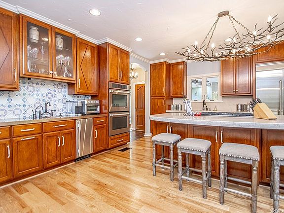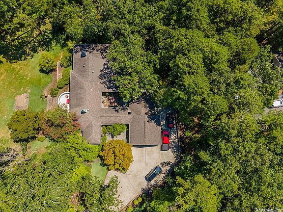Villa Contente, in West Little Rock on 5 acres overlooking a pond, is a one-of-a-kind home offering seclusion right in the middle of town. There are 2 open-air courtyards divided by a covered loggia, large patio with views of the main lawn and pond, and private balcony off the master. There is a laundry room on each level, a theater room, 2 additional living areas, and an office. Ample parking including covered carport for 2 oversized vehicles. Storage/ workshop. Abundant storage throughout.