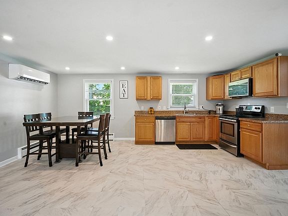 Beautifully updated ranch with an open floor plan perfect for modern living! The spacious kitchen features stainless steel appliances, new flooring, and a unique front-to-back walk-in pantry with direct access to the fully fenced backyard. The sun-drenched family room offers large windows and freshly refinished hardwood floors for a bright and welcoming space.Down the hall are three generously sized bedrooms and an updated full bath. The finished lower level provides additional living space—ideal for a home gym, office, or playroom—with an extra bathroom for convenience.Additional highlights include:• Mini-split A/C in main living area & primary bedroom• Steel beam construction• Fenced-in backyard• School bus stop at end of drivewayMove-in ready and full of charm—don’t miss this one!