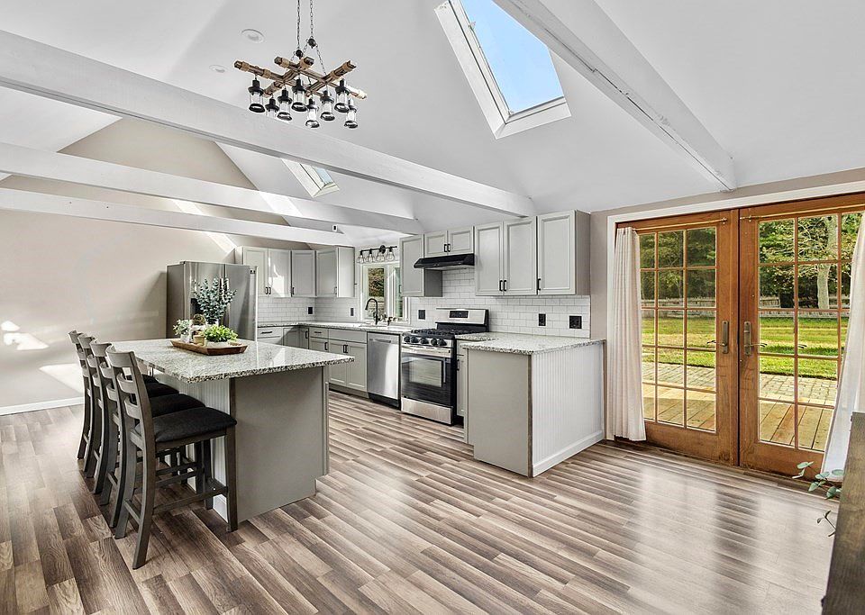 - Features: Skylight, Vaulted Ceiling(s), Flooring - Vinyl, Countertops - Stone/Granite/Solid, Cabinets - Upgraded, Exterior Access, Open Floorplan, Recessed Lighting, Remodeled, Stainless Steel Appliances, Gas Stove, Lighting - Overhead