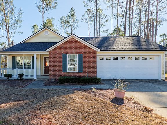 Welcome home! This move-in-ready 3-bedroom, 2-bathroom gem is nestled in the heart of Lakeland, Georgia. The home has a new roof and HVAC less than a year old! Located just a short 17-minute peaceful drive to Moody Air Force Base and within a 5-minute drive to the scenic Banks Lake. This home is ideal for those who value a central location with access to nature and nearby amenities. Start your mornings or unwind in the evenings on the inviting covered front porch, a charming space to relax and enjoy the serene cul-de-sac setting. Inside, the open-concept kitchen features cherry cabinets and a beautiful tiled backsplash. The kitchen opens up to a spacious dining area with an island perfect for barstool seating and French doors leading to a covered patio, utility storage room, and backyard. The spacious primary bedroom suite features a walk-in closet, double vanity, and a tub/shower combo, providing a private retreat. Two additional bedrooms offer generous space and large closets, perfect for family or guests. Step outside to a low maintenance backyard, shaded by mature trees, with the added bonus of a two-car garage for all your storage and parking needs. Don't miss this incredible opportunity to make this house your home!