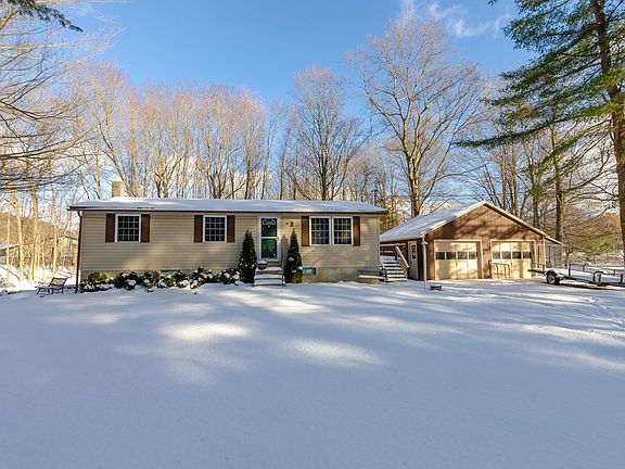 You'll just fall in love with this adorable ranch house tucked away in a peaceful cul-de-sac in the town of Newfield! So private, yet close to town & all amenities. Just 10 minutes from Ithaca, this home boasts 3 bedrooms, 1 full, recently updated bath, Large, inviting living room & a cozy, eat-in kitchen! LL is full walk out with loads of potential, set up for a wood stove & would make a great family room. Ample storage space. Nice side deck, great for entertaining! Large, detached 2 car garage. Enjoy campfires in your private back yard! Agent is related to seller.