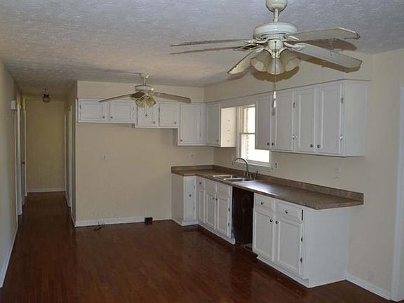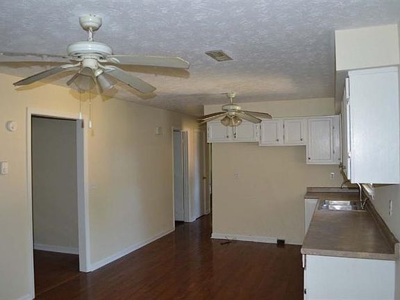 Three bedroom, 2 bath home with kitchen-dining, living, family, laminate wood floors, Hvac, 1 car garage and storage building. Treed front yard in a neighborhood setting.