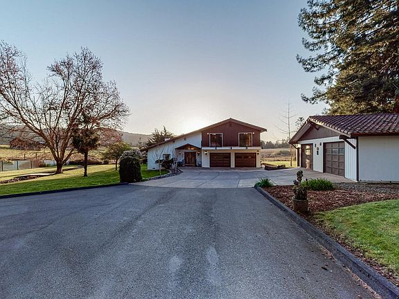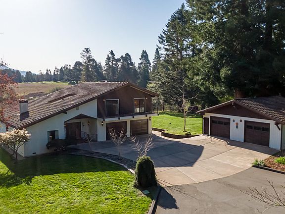 With the look of a Tuscan Villa, here is an attractive and spacious custom home with an updated kitchen, a large primary suite that looks over hundreds of acres of pasture, and special features like a large terrarium inside the house and a big shop larger than a double car garage. Sitting on a lever lot and set well back of this quiet cul de sac this home has privacy and plenty of places to be. Enjoy a large living room overlooking the valley and a back drop of redwood forest and hills, a formal dining room open to that same view and a family room with a fireplace. The grounds are gorgeous too full of trees and shrubs and a faux creek tricking by. The shop has a heater and restroom and plenty of light. So come home to your Italian villa and see the beauty that a private estate offers.