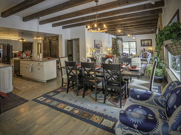 Prepare to step into an original Angel Fire masterpiece. Built in 1967, this home was one of the very first homes within the town limits. In 2016, the Ken Sowards Group masterfully remodeled the home, beginning with stripping the home down to the studs in its entirety. The term "Complete Remodel" does not even scratch the surface of the meticulous overhaul performed on the home. Brand new electrical wiring, plumbing, roof, double-pane windows and new hot water heaters were just a few of the improvements added. After the completion of the remodel, San Antonio based interior designer, Kit Schroeder, beautifully designed the home with culturally appropriate pieces mixed with modern chic overlays. This home comes fully furnished and is move-in ready, as well as rental-ready sleeping up to 20 guests. This three-bedroom, three-and-a-half-bathroom, one car garage with 2,573 square feet has absolutely everything you would want in a new home - beautiful custom wood floors throughout, open concept living room/dining room/extra-large kitchen with stunning island, upgraded appliances, under-cabinet and over-cabinet inlay lighting, wine cooler and spacious pantry. This kitchen is a chef's dream come true, and plenty of space for entertaining! On the main level, you will also find a very spacious mudroom for skis/boots, separate laundry room, beautiful fireplace in the living room with wood beams throughout the main floor, windows throughout allowing for tons of natural light, master bedroom en-suite with beautiful upgrades and very tastefully decorated, as well as the guest bedroom and bathroom. Large backyard deck also comes fully furnished including a Whirlpool hot tub with the Corvana powered roof enclosure, which can withstand up to 4 feet of snow and any heavy bear activity, perfectly paired for our mountain climate. Upstairs you will find another very large bedroom en-suite with large windows and upgraded bathroom. This home has fiber-optic internet, a flat driveway for easy access, fire hydrant in the front yard to assist with insurance costs, and it is within walking distance of the Angel Fire Resort and Country Club and all of the many amenities it has to offer. You REALLY cannot find a better mountain retreat or location! For buyers who may want a little more land, there will also be a great opportunity to pursue the land listing of Lot 22 St Andrews Way, which sits directly behind the Country Club and offers some of the most breathtaking views. Lot 22 St Andrews Way directly connects to the Lot of this home at 18 Pinehurst Way for over 43 feet, and would allow for direct walking access to the Country Club. The potential here is unmatched.