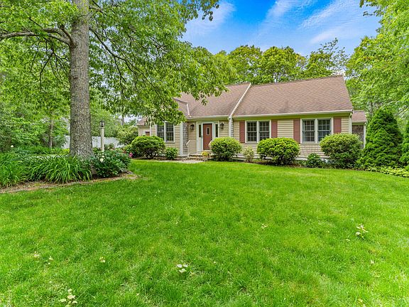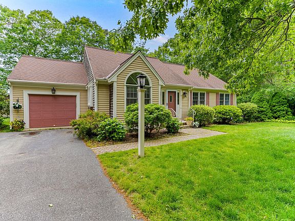 Don't miss this warm and inviting well maintained home located at the end of a cul-de-sac in the very appealing Quashnet Valley Estates. One level living with great natural lighting provides ideal opportunity for entertaining family and friends with an open living dining area extending conveniently to a large composite deck off the back of the home. The primary bedroom with newer bath and enlarged walk in closet also has its own private access to the deck area. The spacious kitchen includes a breakfast nook to enjoy peaceful morning light while you enjoy a morning beverage. 2 other bedrooms complete the main level with second full bath, either ideal also as a home office or study as well. Attached garage with direct entry is an added convenience in inclement weather. The lower level has ample space, partially finished, and great potential for further expansion. Field card mentions 1200+sf ''finished'' in LL.