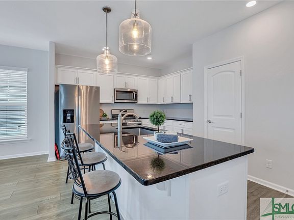 Charming 3 bed, 2.5 bath corner home with a 1-car garage in Bradley Point. Enjoy a bright, open floor plan connecting the kitchen, dining area, and living room. The kitchen features stainless steel appliances, an island with breakfast bar and ample storage space. The primary bedroom boasts an ensuite with double vanity sinks, a glass shower, and a balcony overlooking the neighborhood. Step outside on the patio overlooking the lush, fenced backyard. Community amenities include a clubhouse, fitness facilities, tennis courts, a playground, and a pool. Just 15 minutes to Pooler or Downtown Savannah for shopping, entertainment, and dining. Conveniently located near Savannah Airport, Savannah Ports Authority, hospitals, Hunter Army Airfield, Fort Stewart, and Gulfstream. Your ideal home awaits!