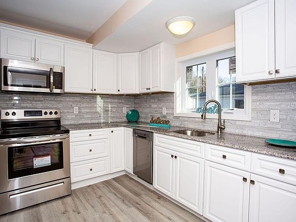 WOW! Under 200k in East Longmeadow, Motivated Seller. Beautifully remodeled cozy bungalow-style home located on dead end street. Private location with park-like setting. Newly painted throughout with neutral colors & light colored oak vinyl flooring give the home a coastal style look. The new kitchen boasts new white wood cabinets, new stainless steel appliances - stove, refrigerator, dishwasher, microwave, garbage disposal, a separate pantry & an area for a small table. All new bathroom with new toilet, vanity, tub surround, new plumbing, flooring, etc. Large open dining/living room with new bamboo flooring. Hardwood in two bedrooms and bamboo flooring in the master bedroom. Large updated sun room for relaxing. Bonus room on 2nd level and potential for another room and storage. The roof and the vinyl siding have recently been power washed and shutters freshly painted. There is nothing to do but move in and enjoy! Close to stores, restaurants, and town amenities.