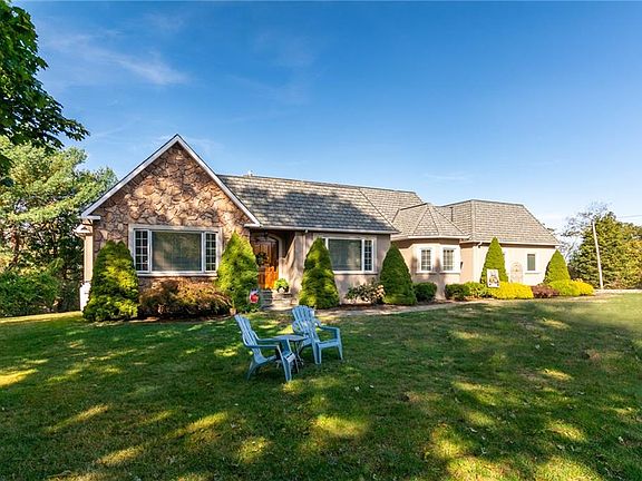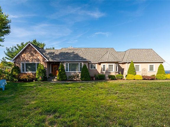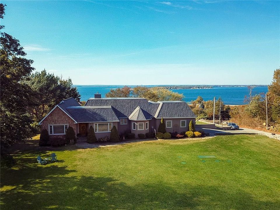Enjoy spectacular sunsets and views of the Mt. Hope Bridge and Narragansett Bay from this sprawling, custom built home with over 4500sf of living space. Privacy and solitude abound on this corner, acre lot, surrounded by stone walls, located on a dead end street with easy access to the beach and highway. Huge formal dining room with cathedral ceilings, and french doors leading to a spacious covered balcony, ideal for entertaining or relaxing and enjoying your quiet yard. Gourmet kitchen is a chef's dream with Viking range, soapstone counter and sinks, and expansive center island. Add to that, a breakfast nook with morning light beaming in. Master en suite boasts a jacuzzi tub and expansive, picture window capturing the gorgeous view. Main level also features a cozy sitting area, home office and cherry hardwoods throughout. All perfectly situated for the option of one floor living! Grand, lower living area features a wet bar, opening up to a backyard patio. Another bedroom and bath with steam shower is perfect for guests. Add another spacious room with picture window and you have a playroom, virtual school, room enough for 2 offices, or exercise room...the possibilities are endless. Exterior, insulated stucco requires minimal to no maintenance. Geothermal heat efficiently heats and cools entire home with 3 separate zones. Brand new septic just installed. Contingent on Seller finding suitable housing.
