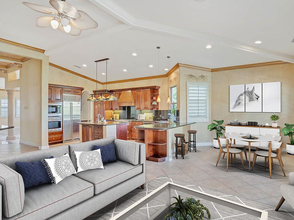 - InteriorFeatures: Cable TV, Breakfast Bar, Kitchen Island, Double Vanity, Walk-In Closet(s), High Ceilings, Great Room, Living Room, Dining Area, Cathedral Ceiling(s), Master Downstairs, Built-in Features, Crown Molding, Entrance Foyer, Open Floorplan, Living/Dining Combo, Den - Study, Walk In Pantry