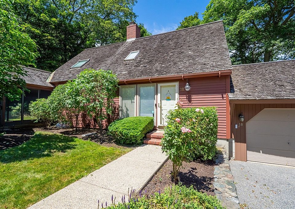 A rare find in the desirable Potter Pond community, this updated and immaculate home allows the privacy of single-family living yet offers the carefree conveniences of condo ownership. Welcome home to a peaceful, park-like setting with walking trails, tennis courts, and a sparkling pond for tranquil nature views. The living/dining room's double-sided fireplace provides a cozy atmosphere on chilly nights. The beautifully updated kitchen offers stainless steel appliances, quartz countertops and stylish cabinetry. The primary suite has double closets, a skylight and a beautifully updated bathroom featuring a tiled tub/shower with a frameless glass door. More space awaits on the finished lower level with a family room and full bathroom. Enjoy the huge patio or wraparound screened porch overlooking the tree-lined backyard. Potter Pond has a rural feel, yet is close to public transportation, highway routes, and only a short drive to popular Wilson Farm. Nest thermostats & EV charger ready.