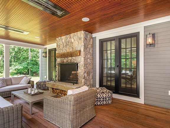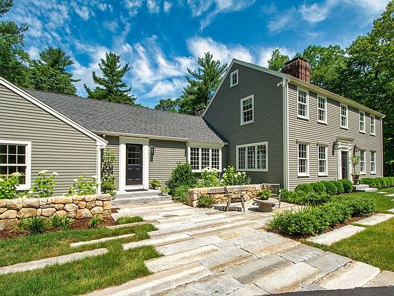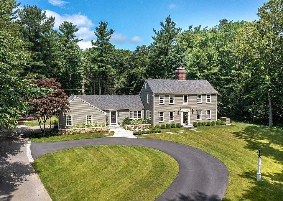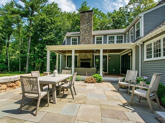 This modern take on a New England colonial is sheer perfection. A stunning transformation of a Royal Barry Wills original design has been fully expanded and remodeled in this designer's dream discreetly hidden down a long driveway of 5+ private acres. An eat-in chef's kitchen with fireplace and seating area, open and inviting social areas, two large offices and a functional mudroom complete the first floor. The second floor offers a magazine worthy primary suite with custom closets & sumptuous bath, a secondary ensuite bedroom with vaulted ceiling and exposed beams, two more well sized bedrooms share a darling tiled full bath. Professionally designed landscaping features a covered outdoor room with fireplace, outdoor cedar shower and functional hardscaping in front and rear yards. The lower level has a finished media room, game room and gym area plus copius amounts of storage. Total property renovation is complete: new roof, windows, HVAC, generator, smarthome system, +++
