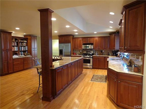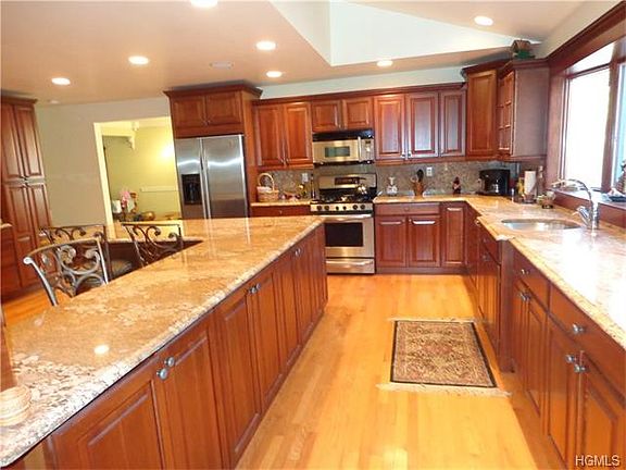 SPECTACULAR GOURMET CUSTOM KITCHEN with so many superlatives! This magnificent Better-than-New colonial was totally renovated to the studs, and added to, with the best of everything!. Banquet size kitchen with huge L-shape center aisle, additional bonus family room with huge windows on main level, dining room extension to 24 feet that will hold a crowd, all upgraded stainless appliances, 3 beautiful new tiled bathrooms, lovely hardwood floors throughout, and everything NEW! New since 2003 walls, siding, windows, roof, furnace, hw heater, addition, bathrooms, kitchen, doors etc.! Full walkout basement with rooms sectioned out and with finishing materials that can stay with house. Plus great cul-de-sac location near transportation and easy access to TZ and GW bridge! Sought-after award-winning South Orangetown Schools!! This amazing home is a winner!
